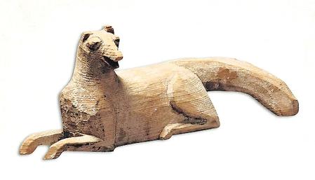武威木雕中的獨角神獸獬豸,在《后漢書·輿服志下》有記載:“獬豸,神羊,能辨別曲直。楚王嘗獲之,故以為冠。”“獬豸冠”自秦以來都是朝廷監察機構中執法人員的“法冠”。因此,在武威磨咀子漢墓群中出土的獬豸形象,既是“明辨”與“正義”的象征,也是漢文化的體現。