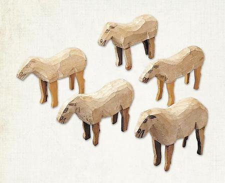 木羊俑長度為18-20厘米。皆以白色作底,只在頭部用墨色略加勾畫,繪出耳朵、眼睛、鼻孔和微張的嘴,造型簡潔,身軀較肥,頭部較瘦。羊俑造型題材也體現出涼州地區畜牧業水草豐茂的特色。
