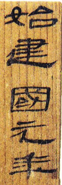 在這座古城出土了一座新莽始建國元年的花崗巖石雕刻虎符石匱,石上鐫刻有三行篆體文字: