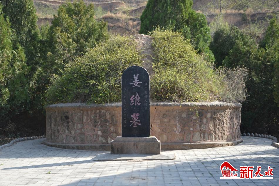 陽春三月,春意盎然,我興致勃勃地來到距甘谷縣城7公里的姜家莊,在老教師王柏林的陪同下,沿著蜿蜒曲折的小石子路,踏著當年姜維生活的足跡尋訪探古。從姜家村河堤公路向右轉,姜維紀念館就在眼前,大殿內,姜維塑像身材魁梧,雙眼凝視渭川,仿佛仍在追憶當年馳騁疆場的歲月。