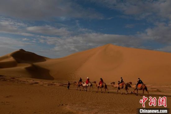 圖為敦煌大漠晨光引客“畫中游”。 張曉亮 攝