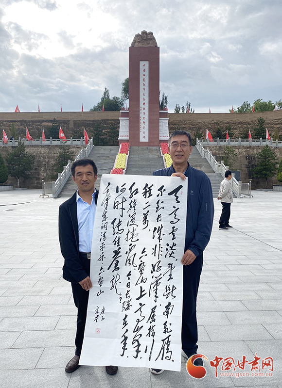 當天,甘肅省延安精神研究會還向將臺堡紅軍會師長征會師紀念園贈送了毛體書法作品。