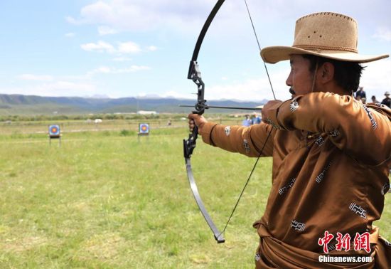 8月8日,甘肅張掖市肅南裕固族自治縣皇城鎮第十六屆民族文化旅游藝術節暨傳統體育運動會拉開帷幕。賽馬、押加、拔棍、頂杠子、射箭、背垛子等一項項少數民族傳統體育運動項目,吸引上萬觀眾觀看。近年來,肅南縣將體育項目與歷史、民族、文化、旅游有機結合,打造民族體育節慶品牌和運動會,使民族傳統體育發展增加了新的內涵,逐步形成了全民健身品牌,影響力不斷擴大。圖為參賽選手進行拔棍項目比賽。 趙琳 攝