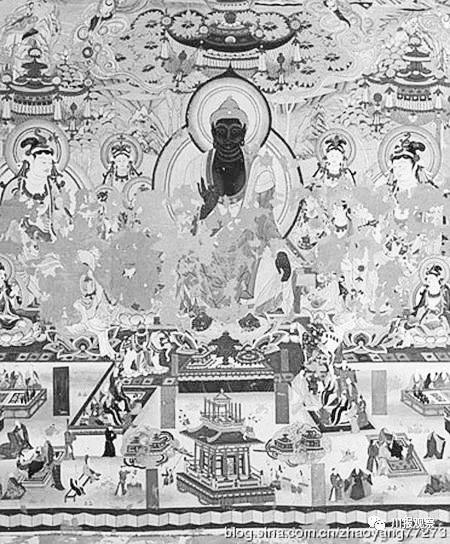 這幅壁畫(huà)是以繪畫(huà)的形式闡述了《彌勒下生經(jīng)》中所描繪的“人命將終,自然行詣冢間而死”的內(nèi)容。
