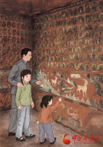 “希望小讀者們能從中感受到藝術的魅力和愛國奉獻的精神。希望他們能通過這本書,去了解那段歲月,那些人,那些事。有一天能去看看那里的千年歷史,去感受一扇扇窟門背后的絢爛無聲,去了解那里無數人的勇氣、信仰、堅守……”趙劍云這樣寄語小讀者。