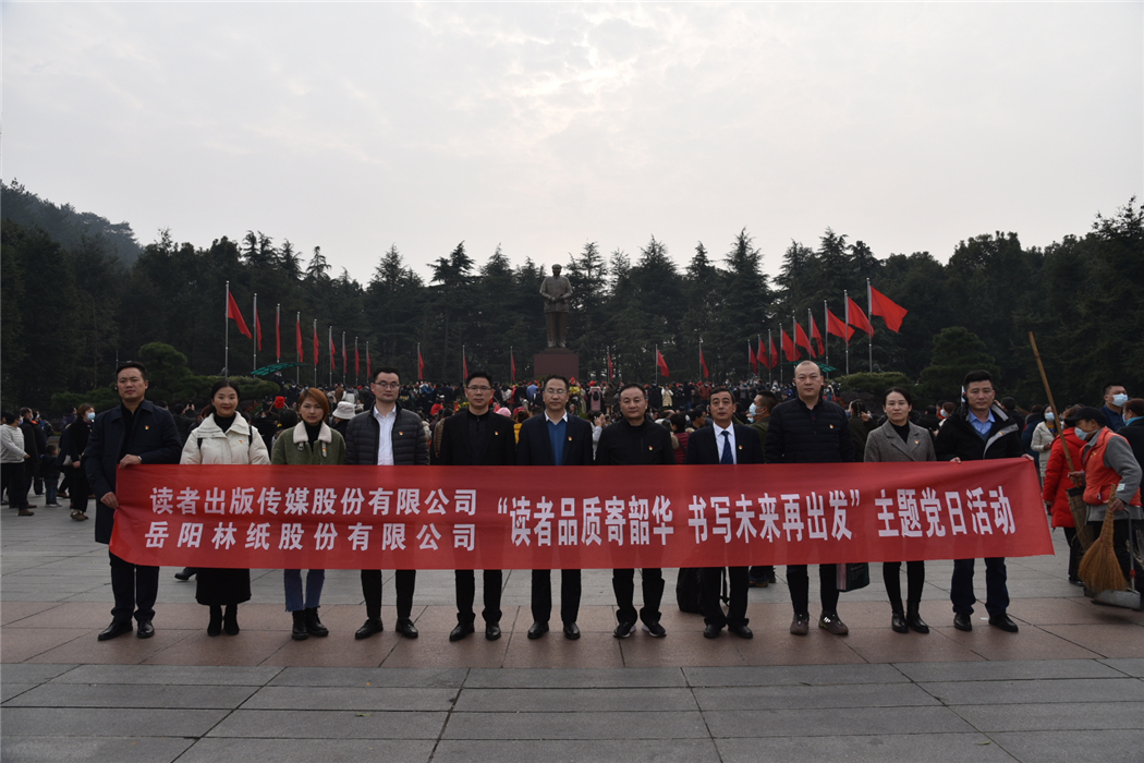 12月26日,是毛澤東主席誕辰127周年。讀者出版傳媒股份有限公司與岳陽林紙股份有限公司在湖南韶山黨性教育基地,開展了“讀者品質寄韶華,書寫未來再出發”聯合主題黨日活動,并現場聆聽黨課。