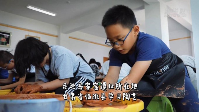 正值暑假,來自全國各地的近20名中小學生通過參加暑期夏令營,走進馬家窯彩陶文化遺址所在地甘肅省臨洮縣學習陶藝。