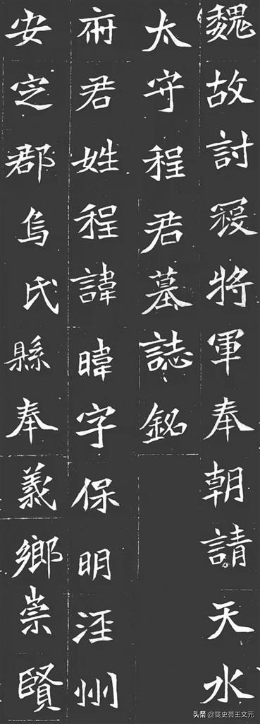 就書法來說,北魏《程暐墓志》也有很高的價值。這方墓志,高58.7厘米,寬59.8厘米,刻18行,滿行18字,共309字。書法精整秀逸,格高力厚,為北碑中之神品。今人評述:以其與元顯儁相較,平正而不偏頗,比之崔敬邑,氣足而力不弱。李松先生有言:“學魏者或以此志為范可也!未必學魏必寫《始平公》《張猛龍》。”這個墓志,可作為我們臨習楷書的上佳范本。