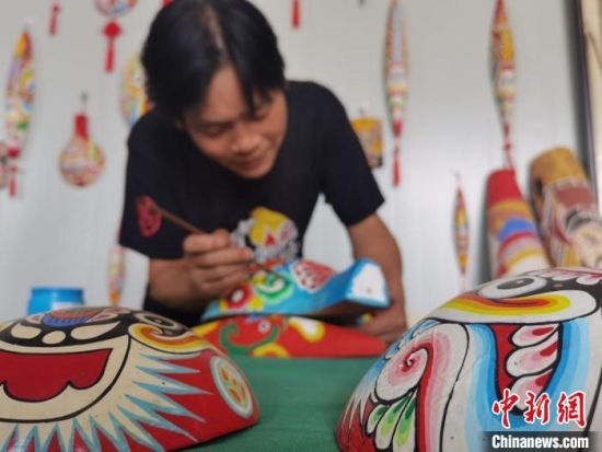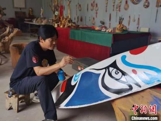 取材、挖空、刨光、勾線(xiàn)、著色……經(jīng)過(guò)這些步驟,一個(gè)馬勺臉譜就完成了。馬勺臉譜由中國(guó)民間社火臉譜演化而來(lái),已有數(shù)千年歷史,系列產(chǎn)品主要包括馬勺臉譜、梭子臉譜、鏟子臉譜、木锨臉譜等。9月初,甘肅省隴南市徽縣馬勺臉譜的省級(jí)傳承人馬龍,依舊在工作室創(chuàng)作。今年47歲的他,堅(jiān)守馬勺臉譜的制作技藝已有20余載,不僅傳承了社火臉譜和京劇臉譜的古韻,而且創(chuàng)新了貼金、刻繪等技藝,在傳統(tǒng)中融入了現(xiàn)代造型和色彩元素。它的作品在網(wǎng)絡(luò)引起熱議:“臉譜畫(huà)在梭子上,厲害了。”“寶藏非遺,期待下次打卡。”