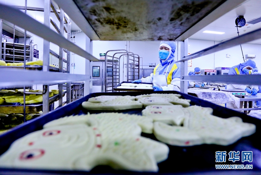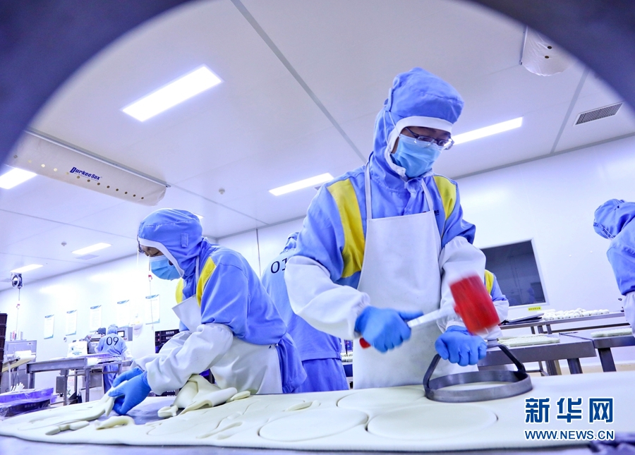 9月9日,甘肅省張掖市甘州區一月餅加工車間內,工作人員正忙碌制作中秋“土月餅”。新華網發 (王將 攝)