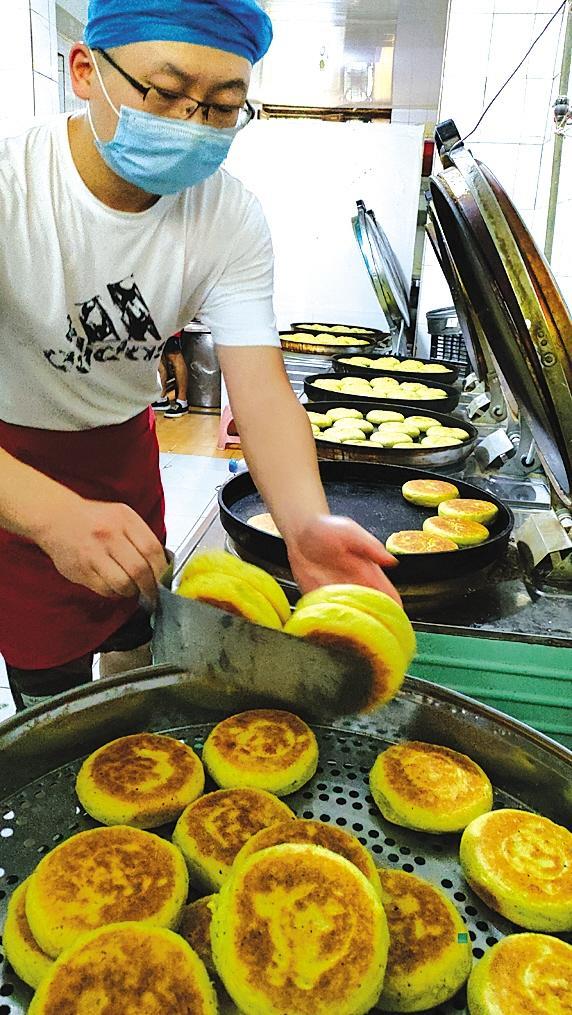 9月16日,在張掖路菜市場,一家油鍋盔店制作的傳統月餅只能用一個“火”字來形容。來這家店購買月餅的顧客從凌晨四五點就開始排起了長隊,單日月餅銷售量超過一萬個。