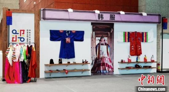 9月24日,“一會一節”期間,極具“韓風”的主賓國韓國館在甘肅省敦煌市開館。圖為傳統韓服展示?!《∷肌z