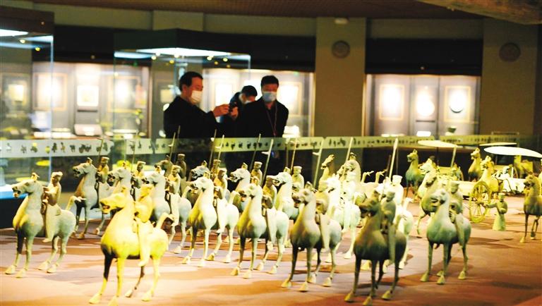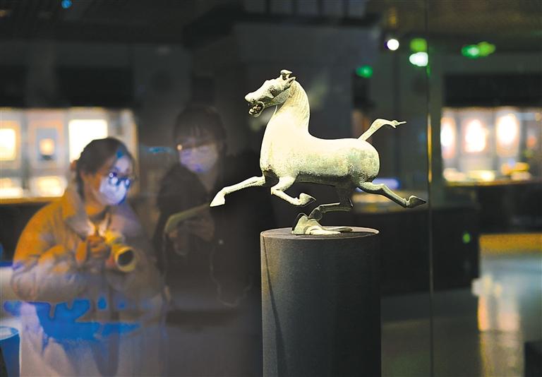 這是觀眾在甘肅省博物館銅奔馬等展區參觀。 奔流新聞·蘭州晨報記者 裴強 攝