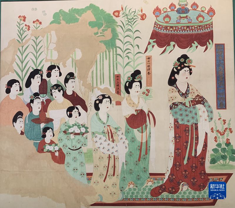 《都督夫人禮佛圖》復制品(段文杰臨摹)。新華社記者 張玉潔 攝