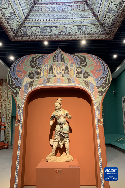 敦煌石窟藝術展展出的彩塑臨摹品。新華社記者 張玉潔 攝