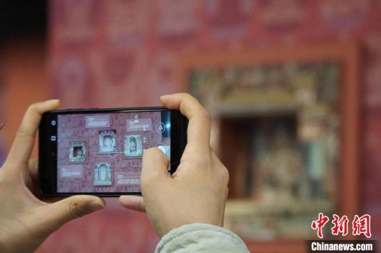 圖為觀眾欣賞數(shù)字復(fù)制壁畫。 九美旦增 攝