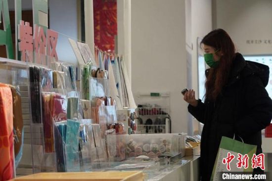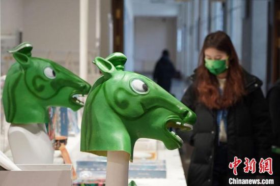 1月14日,甘肅省博物館文創(chuàng)中心的銅奔馬頭套吸引參觀者駐足觀看。連日來,甘肅省博物館文創(chuàng)中心推出的以銅奔馬為主題的文創(chuàng)產(chǎn)品,如“神馬來了”銅奔馬頭套,“綠馬”出行口罩等產(chǎn)品備受歡迎。