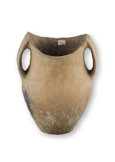 該陶罐(圖①)高31.5厘米、口徑16.7厘米×16.7厘米、底徑11.5厘米。夾砂紅陶,陶質粗糙。雙馬鞍形口,束頸,寬帶雙耳,溜肩,鼓腹斜收,平底。器表有煙炱。