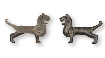 虎符即兵符,最早出現于春秋時期,盛行于戰國、秦、漢,隋唐以后逐漸由令牌代替。各個朝代的兵符造型各不相同,以象征軍威的虎形符為主,兼有鷹、龍、魚等形狀,材質也分金、玉、銅、木、竹等。但是最大的區別在于兵符上的軍隊編制的標識?;⒎鶠樽笥覂砂?,右半為皇帝或朝廷保管,左半為將領或地方長官所持,左右兩半各有榫卯,合攏后嚴絲合縫,方可調兵。虎符為中國古代帝王授予臣屬兵權和調發軍隊的信物。