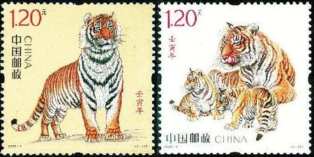 2022年是農歷壬寅年,即“虎”年,中國郵政于1月5日發行《壬寅年》特種郵票,全套2枚。這是中國郵政發行的第四輪生肖郵票的第七套。虎年生肖郵票仍然延續了第四輪生肖郵票的“家國”理念:兩枚郵票分別展示了國家的期許、家庭的企盼,組合而成濃濃的新春祝福。