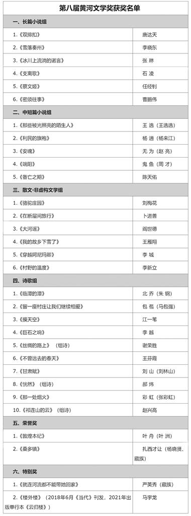 原標題:第八屆黃河文學獎 獲獎名單公示