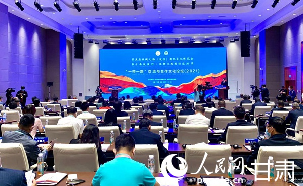 第五屆絲綢之路(敦煌)國際文化博覽會“一帶一路”交流與合作文化論壇(2021)在敦煌國際會展中心舉行。人民網 王文嘉攝