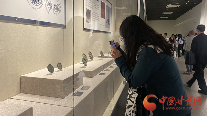 中國甘肅網(wǎng)5月9日訊(本網(wǎng)記者 沈文剛)5月9日,由蘭州市文旅局和平?jīng)鍪形穆镁种鬓k,蘭州市博物館、平?jīng)鍪胁┪镳^、涇川縣博物館、靈臺(tái)縣博物館、崇信縣博物館、華亭市博物館、莊浪縣博物館、靜寧縣博物館等八家市縣博物館聯(lián)合舉辦的《光耀金城 鏡鑒千秋——蘭州平?jīng)鲳^藏精品銅鏡聯(lián)展》開展。