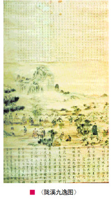 “隴溪九逸”每逢集會,必懸此圖。他們繼承中國文人優良的傳統美德,“居廟堂之高則憂其民,處江湖之遠則憂其君”,看似醉情山水,實則壯心不已,制訂鄉約,設館授徒,為家鄉的文化教育事業發揮著余熱。從這個意義上說,明代秦安“隴溪九逸”正是古代知識分子憂國憂民的一個縮影,亦是那個時代的一抹春色。