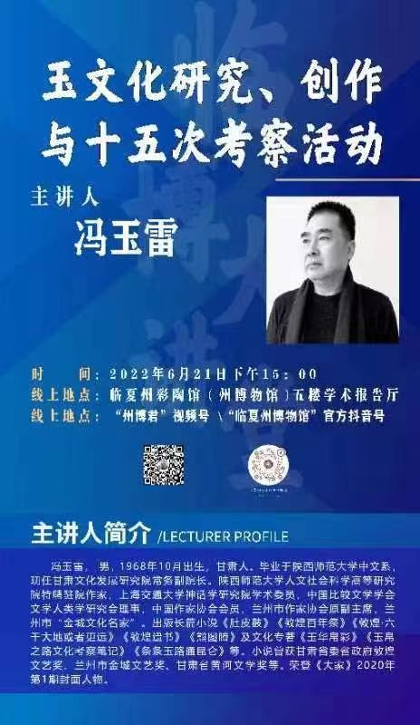 為認(rèn)真貫徹落實(shí)省第十四次黨代會精神,進(jìn)一步弘揚(yáng)中國玉文化和民族精神,推動玉文化傳承及玉文化文創(chuàng)產(chǎn)業(yè)發(fā)展。6月21日下午,甘肅文化發(fā)展研究院常務(wù)副院長馮玉雷受邀在臨夏州彩陶館(州博物館)學(xué)術(shù)報告廳作了題為《玉文化研究、創(chuàng)作與十五次考察活動》的學(xué)術(shù)講座。