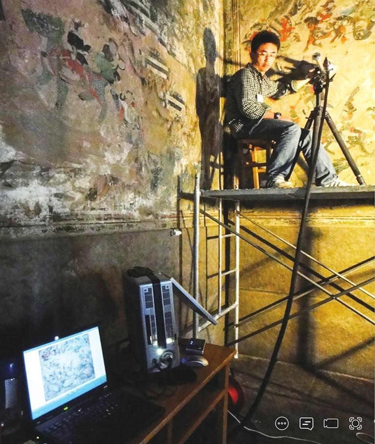 莫高窟第148窟壁畫數字化采集現場。