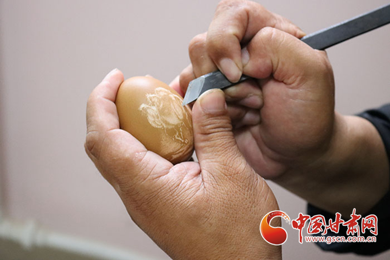 教學(xué)之外,劉財(cái)萬(wàn)對(duì)傳播絲路文化同樣興趣濃厚。2018年劉財(cái)萬(wàn)作為甘肅省殘聯(lián)代表之一參展絲綢之路(敦煌)國(guó)際文化博覽會(huì),并為會(huì)上沿線城市所展示的歷史文化、民俗風(fēng)情、現(xiàn)代文化創(chuàng)新成果所折服。從那之后,劉財(cái)萬(wàn)開始將絲路文化融入蛋雕之中,讓蛋雕成為絲路文化歷史傳承的創(chuàng)新載體。