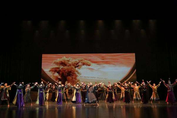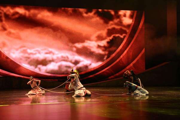 全劇通過極具民族特色和地方特色的舞蹈,展現(xiàn)了從西北大漠到江南水鄉(xiāng)的自然景觀和人文風貌,再現(xiàn)了古絲綢之路上各民族通過商貿(mào)往來增進友誼的繁榮盛景。
