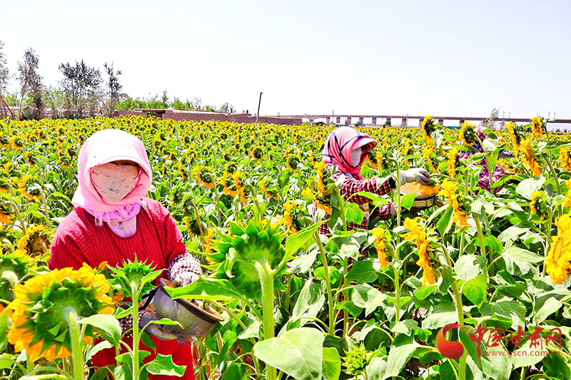 “今年,我們長莊村結合高標準農田建設項目的實施,年初流轉土地一千多畝,與合作社合作引進葵花制種一千多畝,這既增加了我們村集體的經濟收入,而且就近吸納勞動力,每天有五六十人在葵花基地打工,滿足了老百姓就地務工的需求。”臨澤縣新華鎮長莊村黨支部書記宋洋說。