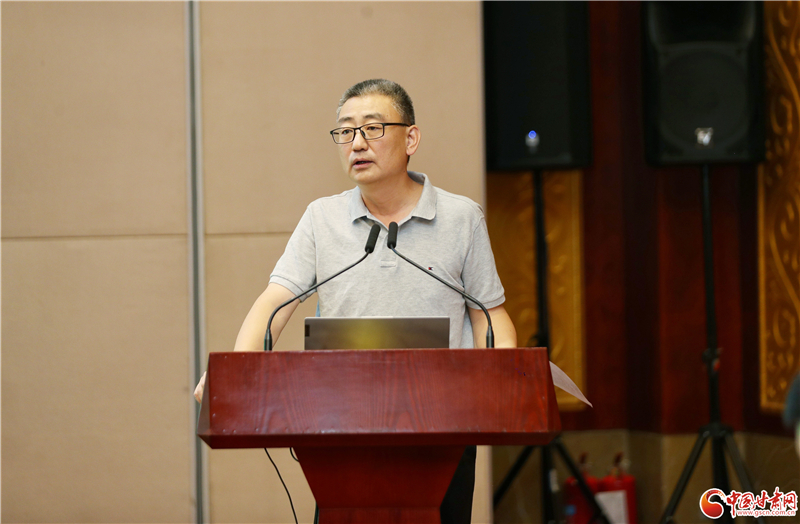 8月18日,甘肅省文聯黨組書記、主席王登渤在“牢記總書記囑托 喜迎黨的二十大——保護傳承弘揚黃河文化座談會”上就如何弘揚黃河文化,傳承其中所蘊含的時代精神,立足黃河文化特別是甘肅的黃河文化,開展文藝作品創作,闡釋了看法。