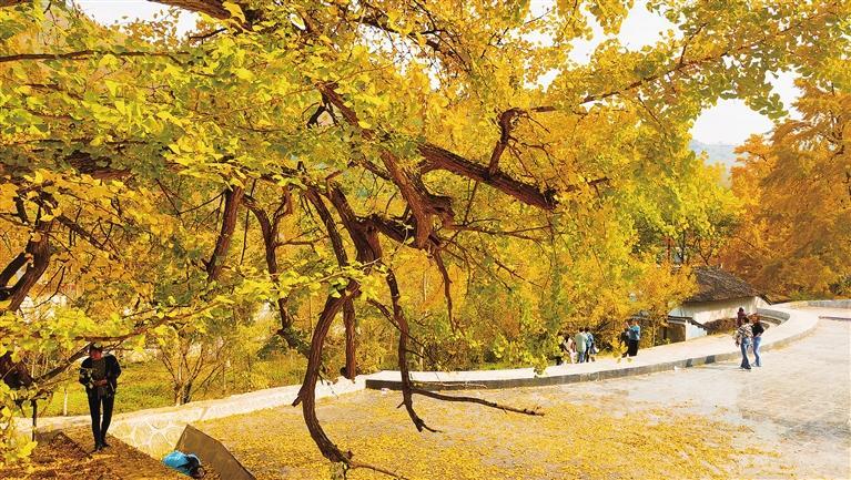 金秋時節,隴南徽縣各地的銀杏樹葉逐漸變黃,落地的銀杏葉宛如一塊“金黃地毯”,勾勒出一幅幅圖畫般的迷人勝景,吸引眾多游客前來拍照打卡。