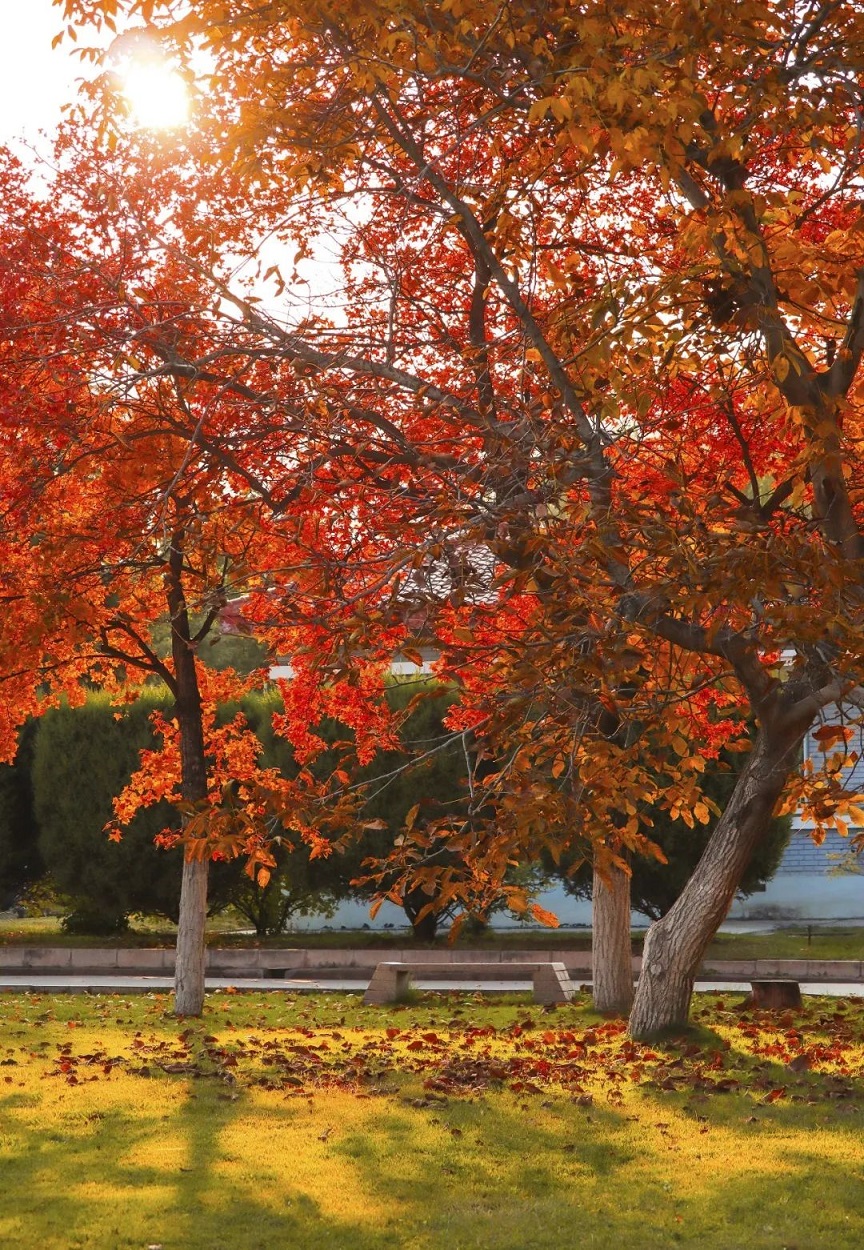 這個季節的金城高校校園,也染上了一層濃濃秋意,明朗火紅,澄澈暖黃,肆意熱烈,芬芳醉人!