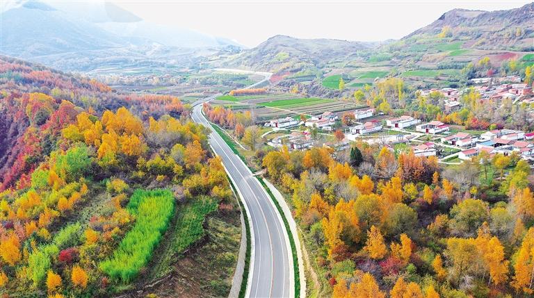 立冬過后,位于太子山下臨夏縣尹集鎮卡家灘村金色的樹林、綠色的麥田、整潔的村落與旅游大通道相互映襯,構成了初冬最美的畫卷。 記者 史有東 攝