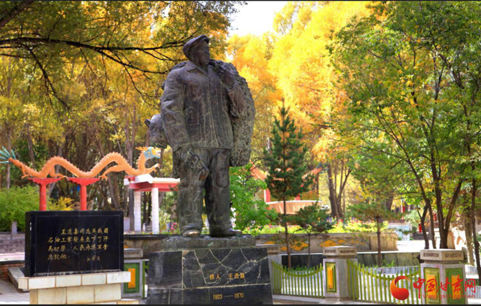 玉門油田紅色旅游景區內“鐵人”王進喜雕塑(酒泉市文體廣電和旅游局供圖)