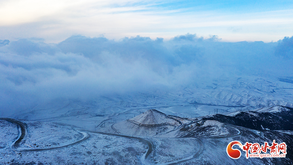 近日,一場降雪過后,武威市天??h烏鞘嶺出現云海景觀。從海拔3562米的毛毛山俯瞰,大地銀裝素裹,雪山巍峨,云海起伏,云霧沿著山脊緩緩流動,好似潔白的綢緞,美如仙境。