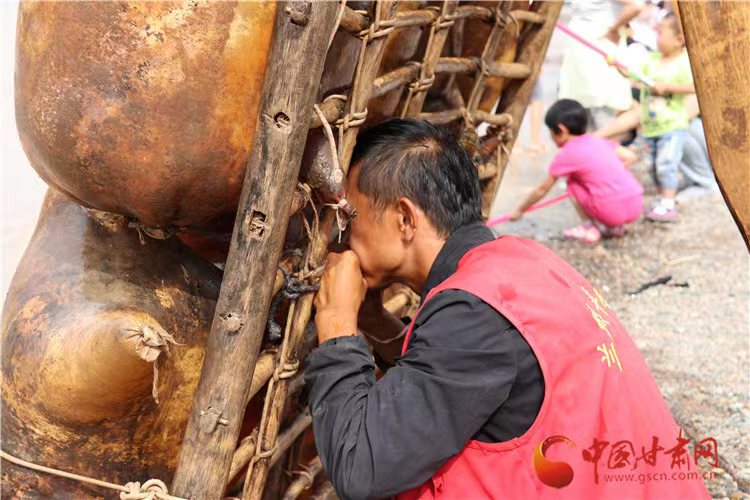“九曲黃河十八彎,筏子起身闖河關。”羊皮筏子,舊稱“革船”,是黃河特有的風景和古老的運輸工具。蘭州羊皮筏子距今已有300多年歷史,作為河道上的短途運輸工具,除了擺運渡河商旅和兩岸百姓外,還用于商貿販運。