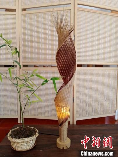 圖為竹編火炬落地燈。(資料圖) 甘肅省非遺保護中心供圖