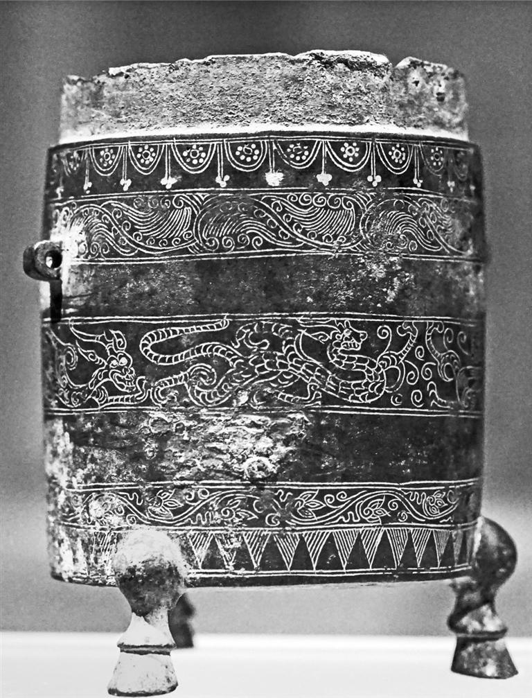 這件金錯泥筩,是目前發現的唯一一件可以確定的、與前涼張氏王族有關的宮廷用器。征集于西安,可能是公元376年,前涼末主張天錫投降前秦后前往長安時帶去的。