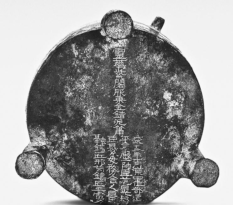 泥筩制作使用了金錯工藝。金錯,即所謂的錯金。這種工藝要經過鑄造、鏨槽、鑲嵌、磨錯等一系列程序,其工序繁復,其中的鏨槽、鑲嵌需要極高的技藝。歷經1600多年的歷史,這件泥筩上的金錯紋飾依然熠熠生輝,反映了前涼時期錯金工藝水平之高。并且在泥筩銘文中還記載有融錯匠的名字,這在國內青銅器銘文中極為少見,說明這種手工藝在當時可能已經是前涼官府手工業的一個生產部門。