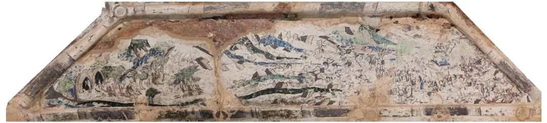 隋唐時期是麥積山石窟歷史上的一個重要轉折階段,根據對麥積山崖面現存窟龕綜合考察分析,可知到北周時,壁面上已是窟龕密布,幾乎已經沒有多少可供利用的位置。這一時期現存窟龕主要有第5、8、10、13、24、37等窟,多為隋代開鑿。其中第5窟完成于初唐,繪制于右側大龕外壁上方的西方凈土變,場景壯觀、人物眾多,是唐代壁畫的杰出之作。