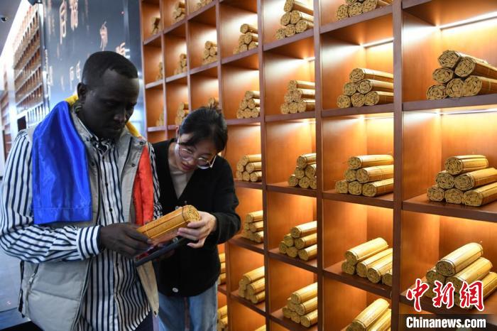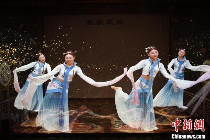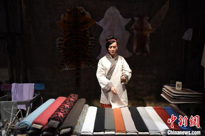 5月9日,甘肅省武威市“河西都會”讓游客沉浸式體驗武威歷史文化。圖為游客在大漢賦館內體驗。 戴文昌 攝