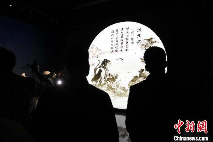 圖為游客在涼州詞館內體驗閱讀古詩詞。 戴文昌 攝