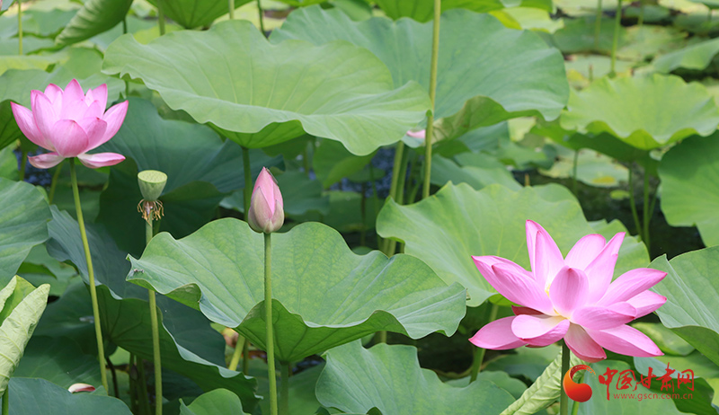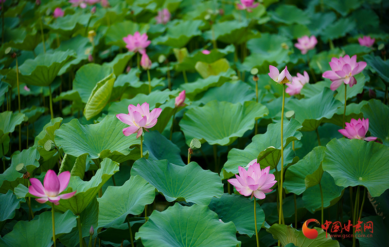 盛夏時節,甘肅成縣裴公湖的荷花爭相盛開,吸引大批游客前來觀賞,拍照打卡。