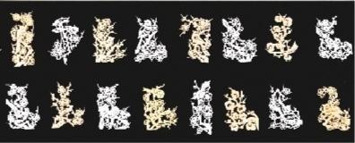 所剪的梅花枝干千姿百態(tài),變化多端,有粗有細(xì)、有長有短。梅花花朵有大有小,有的含苞未放,有的正在盛開。所剪的喜鵲也是形態(tài)多樣,有的在枝頭歡唱,有的在花間飛翔,有的竊竊私語,有的比翼雙棲,給人以喜氣又可愛的視覺效果。共分為8幀圖卷,分別為《寒梅吐艷》《喜梅報(bào)春》《一門喜事》《雙喜盈門》《喜事連連》《梅開五福》《登高望遠(yuǎn)》《喜上眉梢》。