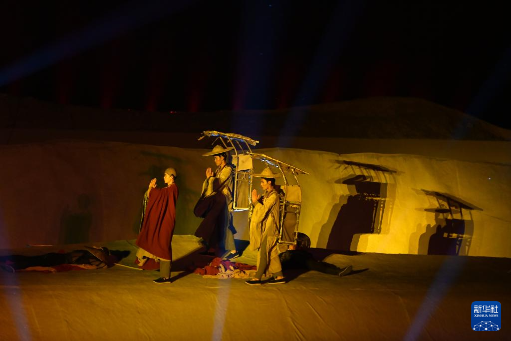 今年以來,脫胎于敦煌文化的洞窟沉浸式體驗劇《樂動敦煌》、室內情景體驗劇《又見敦煌》、沙漠實景演出《敦煌盛典》和中國殘疾人藝術團情景音畫劇《千手千眼》四場劇目在絲路名城甘肅敦煌同步上演,劇目將敦煌歷史底蘊、服飾文化、樂舞文化等生動融合,為游客呈現出精彩絕倫的敦煌文化視覺盛宴,深受中外游客喜愛。截至8月10日,四大劇目今年已累計演出1175場次,觀看游客突破66萬人次。其中,《敦煌盛典》以敦煌鳴沙山月牙泉為背景,將沙漠景觀與現代舞美結合,將墻體燈光融入實景演出,講述了一段發生在古絲綢之路重鎮敦煌的愛情故事,展示了敦煌的歷史文化及人文風貌。