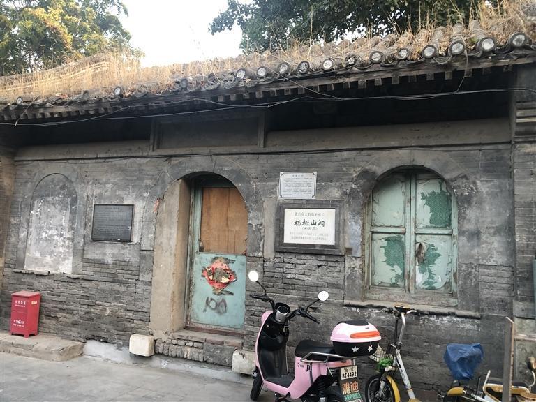 就是在這個胡同里,我看到一個歇山式屋頂的房屋,但已相當的破敗,屋頂上長滿了凄凄荒草,門窗皆已破爛不堪。但是門旁的墻壁上卻鑲嵌著一塊匾,近前一看,上面寫著“楊椒山祠”。喲,這就是楊椒山在北京的祠。